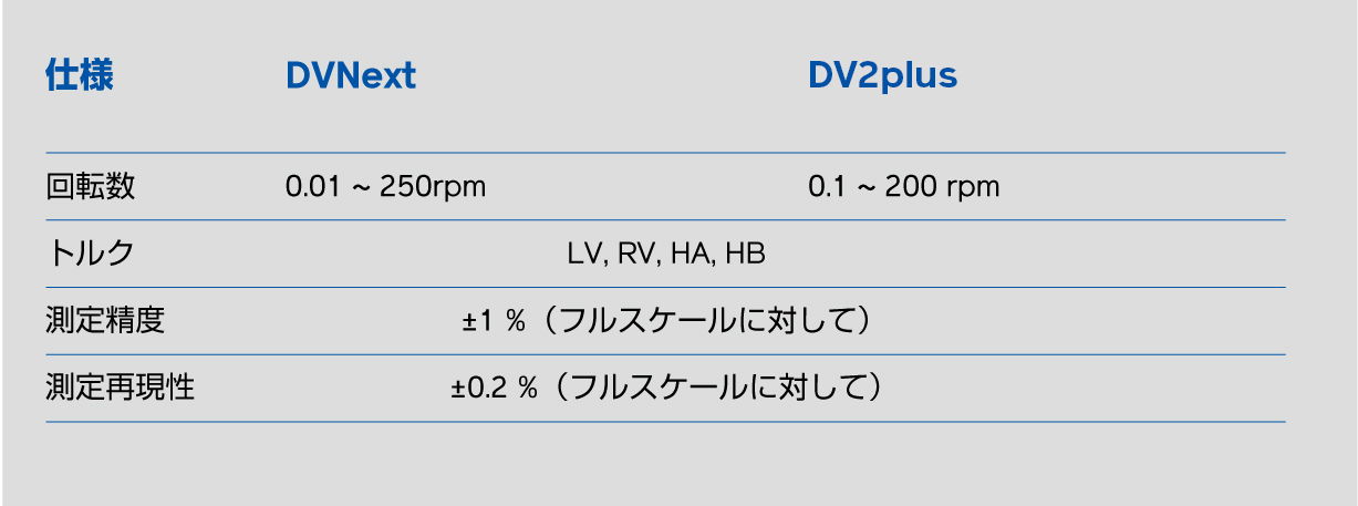 サンプルや使用目的に応じて、適切な粘度計・スピンドル・オプションをお選びいただけます。